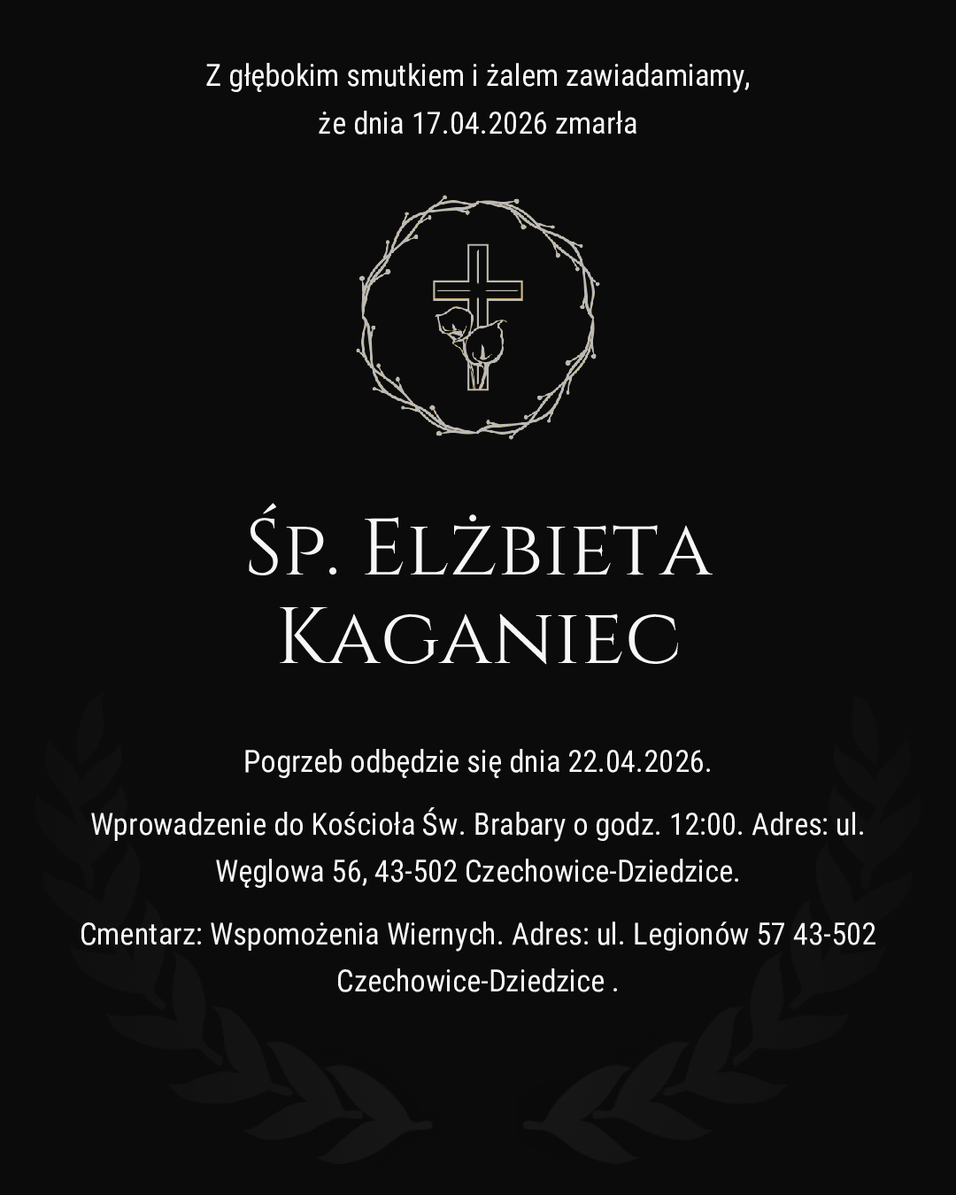 Zmarła 17.04.2026